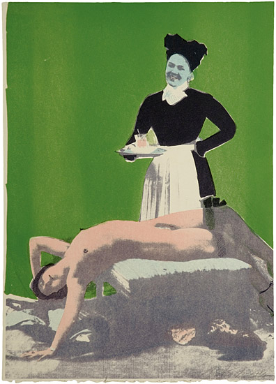 1) Сброшюрована. 510 × 335. 36 страниц в обложке и футляре. Текст — шелкография. Иллюстрации — 15 композиций: цветная литография (контурный цвет — фотолитография); использованы порнографические карточки конца ХIХ — нач. ХХ веков. Фронтиспис — литография, печать в одну краску. Обложка — картон, бумага, литография в две краски.